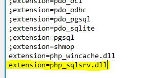 - • Find the section with the extension (ctrl+f search for 'extension='' will get you there quickly.) Add “extension=php_wincache.dll” to the list. Notice that it is not commented out by a semi-colon. Make sure you save the file and close after making changes. (don't misspell it like I did, or you will have to fix it :P)